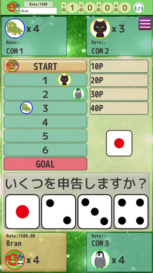 サイコロを振った後にプレイヤーは1〜4の数字をコールします。