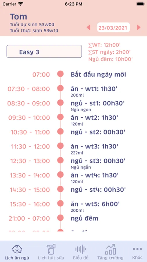 - Sleep time and feeding time note