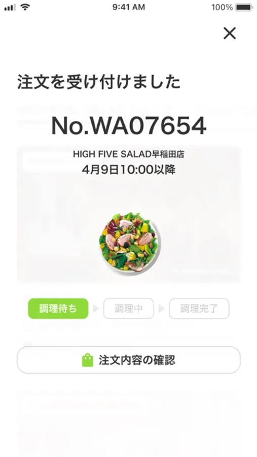 調理が完了するまでの状況をリアルタイムでご確認いただけます。