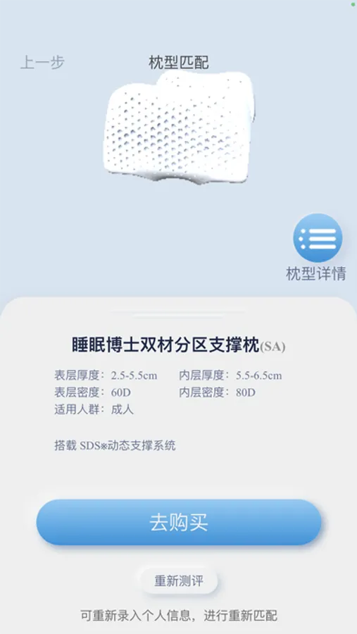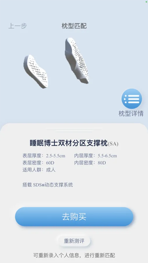 睡眠博士app根据用户输入的信息计算出适合用户的枕形