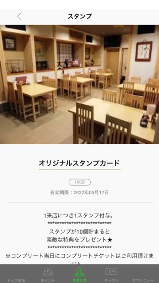 ご利用の際にアプリをご提示ください。アプリ内にスタンプが貯められます。