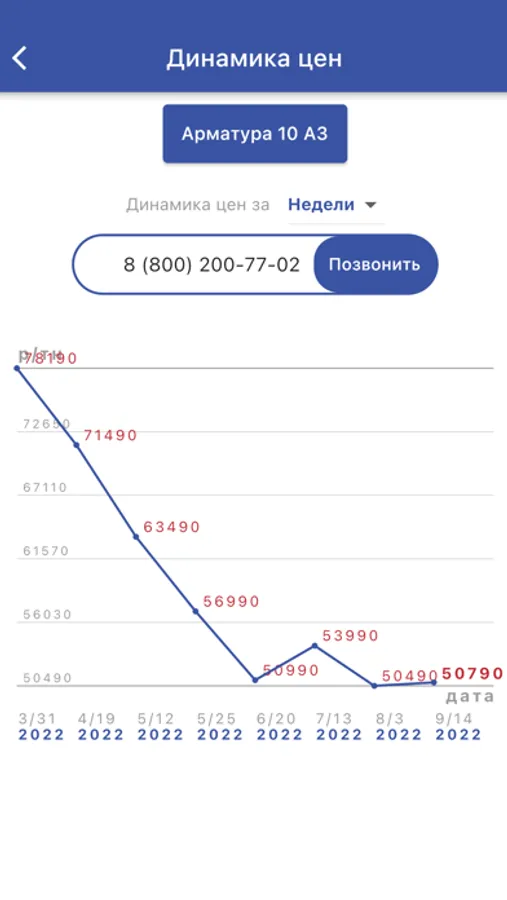 - Текущие цены на металл, а так же динамика цен за выбранный период.