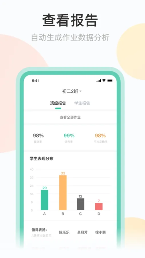 借助大数据服务生成班级作业管理报告、学习报告和错题本,并根据学生不同学情自动推送个性化学习资源,帮助学生解决学习中的问题,快速提高。