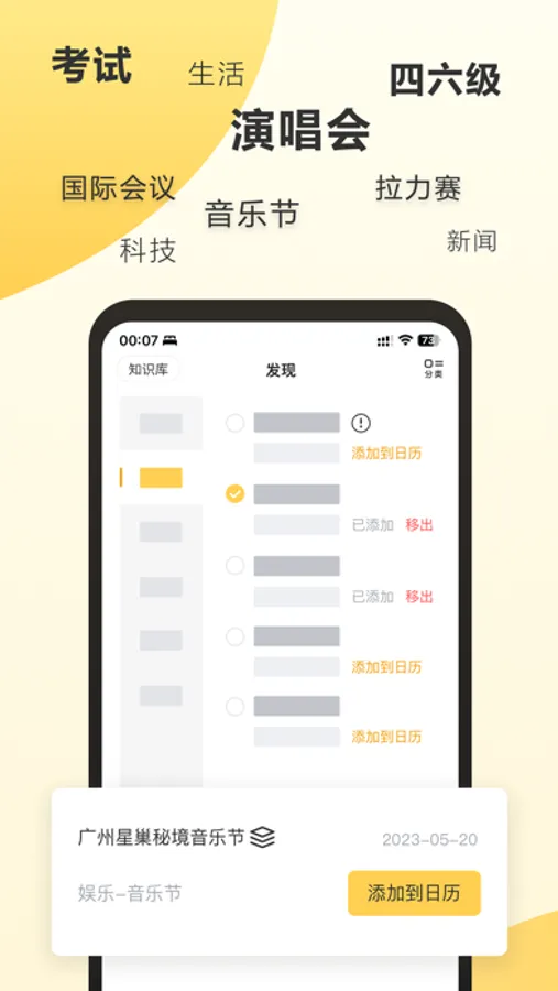 - 周边日程发现:为您提供有价值的周边日程,比如线上的讲座、线下的促销。及时帮您发现您感兴趣的日程,让你不再错过。
