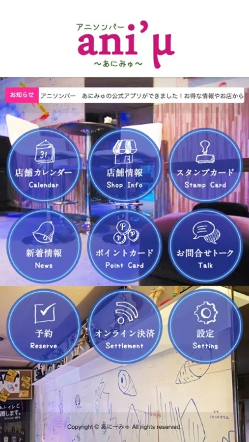 『アニソンバー あにみゅ』からのお知らせや会員様限定の通知情報が届きます。