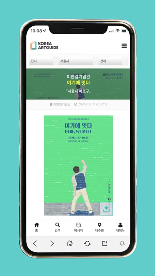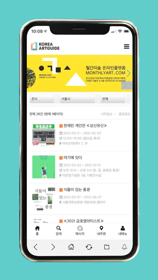 그리고, 예술을 좋아하는 사람들에게는 미술관과 Gallery에서 공유한 지역별 전시 정보를 한 곳에서