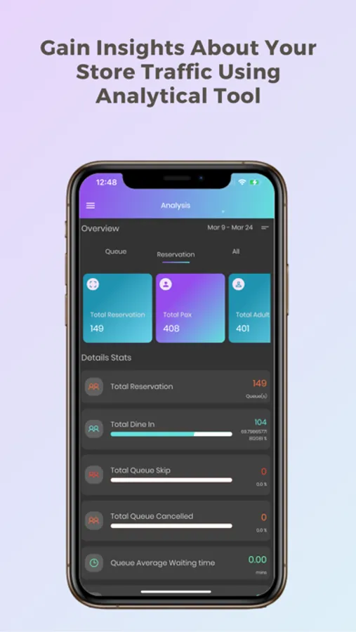 Drag-and-drop the reservations and queues into each table. The floorplan is fully customizable following each F&B premises’ presence. Save time and trees from organizing the reservations and queues on paper.