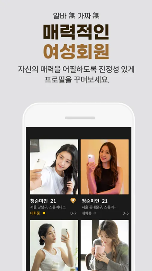 골드앤로즈는 여러 단계의 프로필 검증을 통해 알바 및 유령회원이 없도록 하는 등 회원 관리에 대해 모든 노력을 다해 최선을 다하고 있습니다.