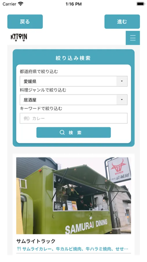 ・画面下の条件を入力して検索することで未来のキッチンカーの場所も確認できます