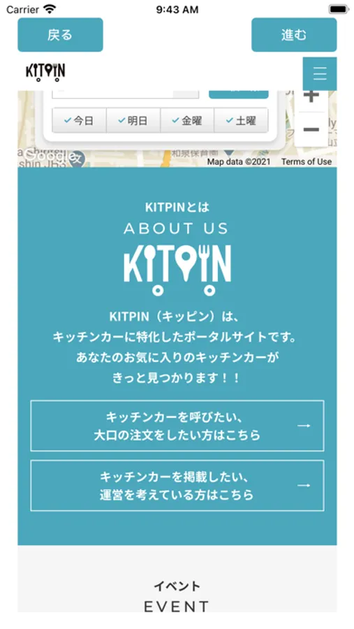 ・現在の位置情報を元に周辺のキッチンカーの場所が表示されます