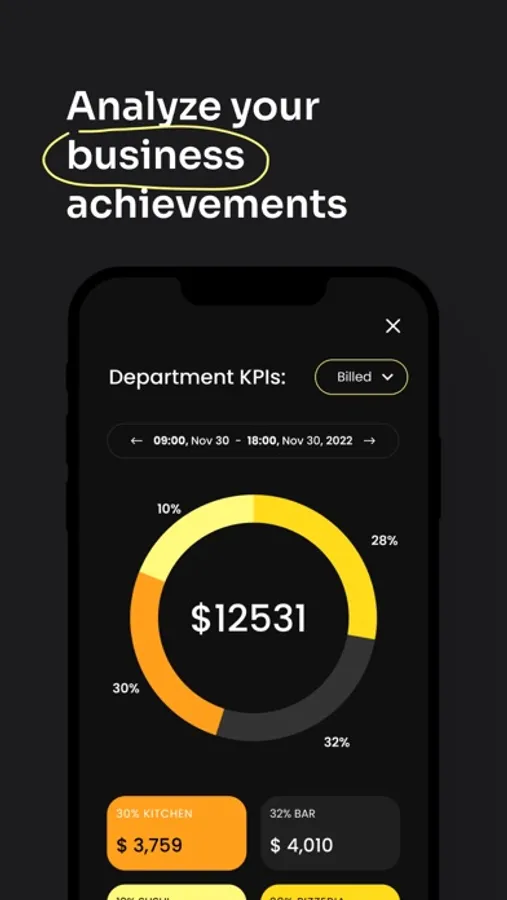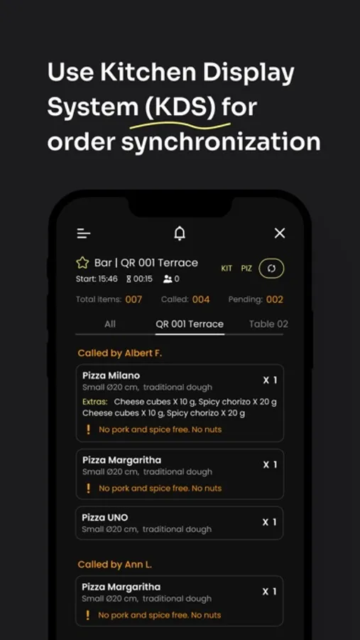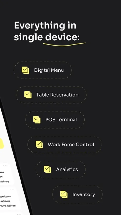 Your customers simply need to point the camera on a QR code for menu access, post order, and - if they wish - complete the payment; By paying a small subscription fee, restaurant owners can also access cool features like sales reporting, shift management, inventory management, KDS, Server ordering, and much more. You can onboard your employees to the platform by sending them an e-mail link and assigning them to a work department. Servers will be notified of the client’s self-orders and when to collect food ready from the kitchen. They can clock in, by using their own phone.