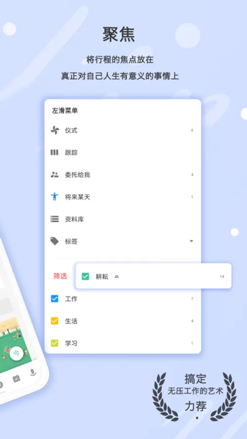 耕耘广受信赖,原汁原味遵循《搞定:无压工作的艺术》书中的GTD时间管理黄金标准,帮助你战胜拖延