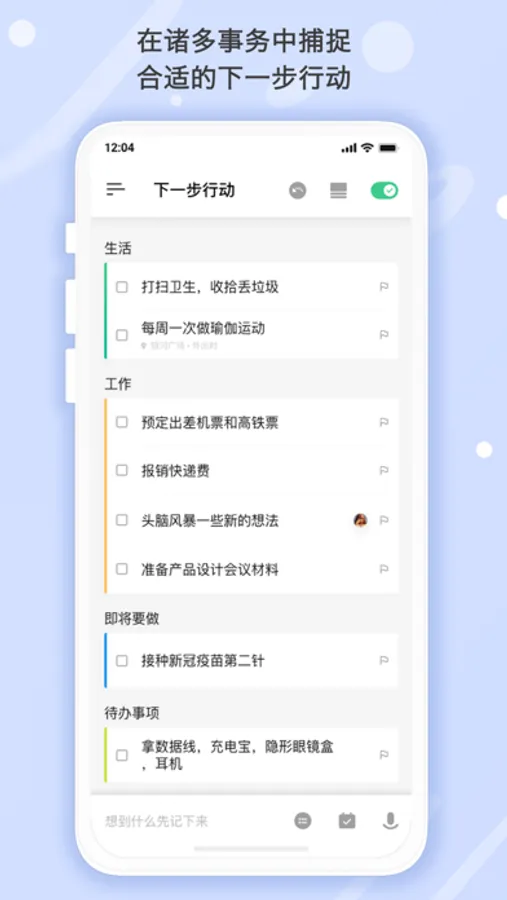 • 用简单高效的下一步行动代替了todo待办事项和今日清单