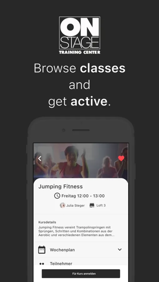 Create your own workouts and watch professional exercise videos and classes from the experts of ON STAGE. Track your training progress at all times.