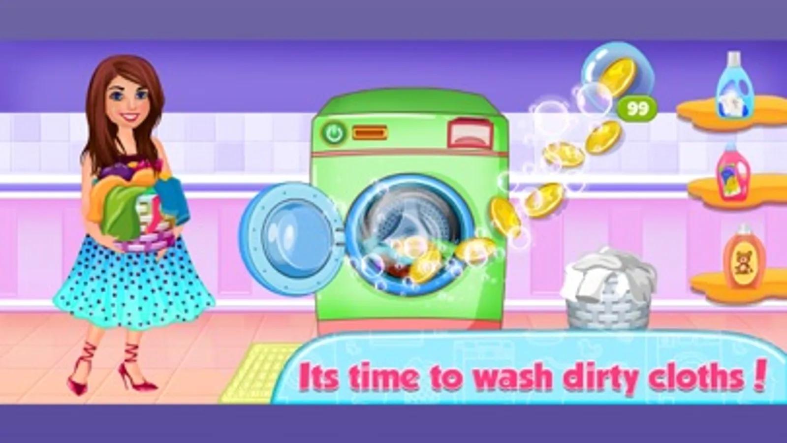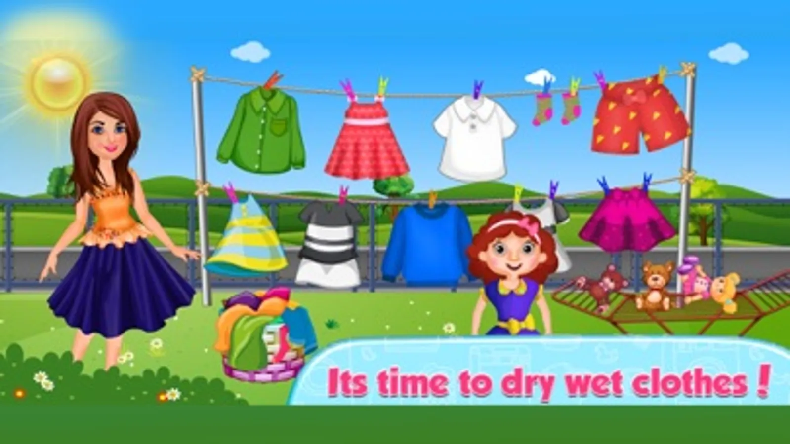 Washing dirty clothes made fun in this cloth washing game. All family dirty clothes need washing. You are helping your mommy in her routine work. This laundry game has three main activities: cloth wash, Iron the clothes and hanging clothes. Wash the dirty clothes using washing powder. When clothes are washed then hang it up over the string and let them dry naturally. You have to iron the clothes to give full laundry service.