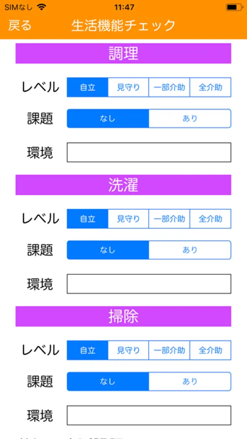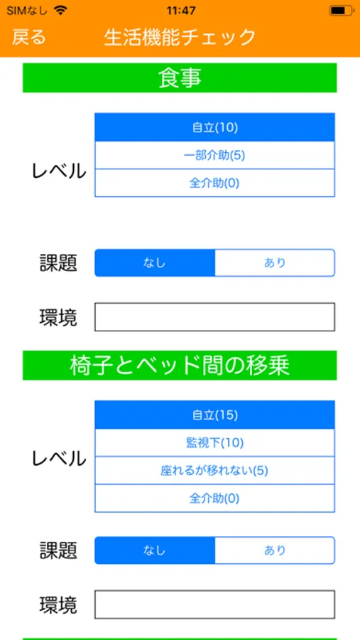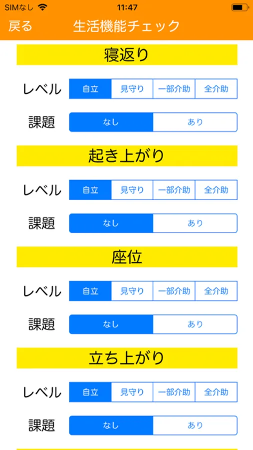 ○「生活機能チェックシートアプリ」は、普段は紙で行われているチェックを、iPhoneやiPadのボタンを押すのみで、手軽にペーパーレスで記録をすることが可能です。