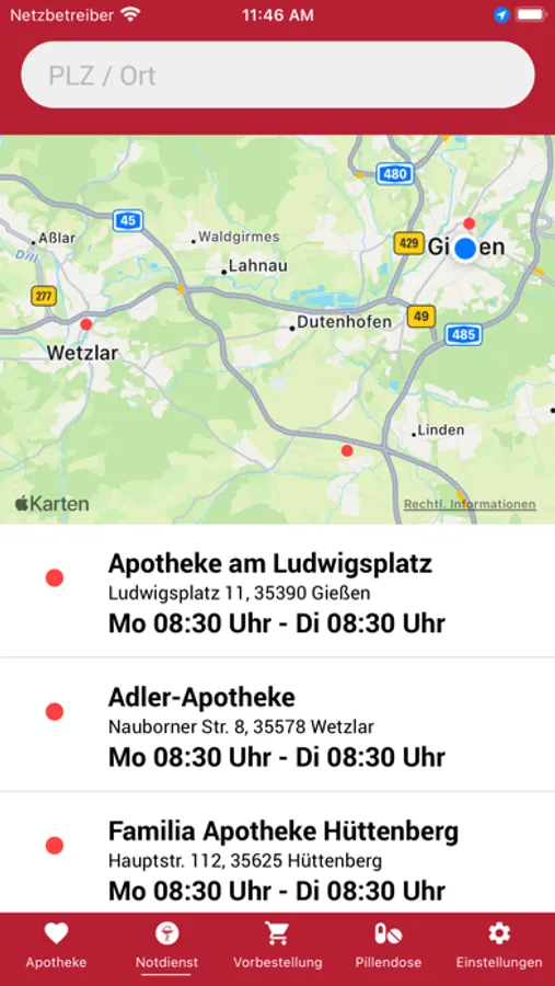 Wer hat heute Nacht Notdienst? Wir zeigen es Ihnen in unserer App. Mit Infos zur Anfahrt und Kontaktdaten der Notdienstapotheke.