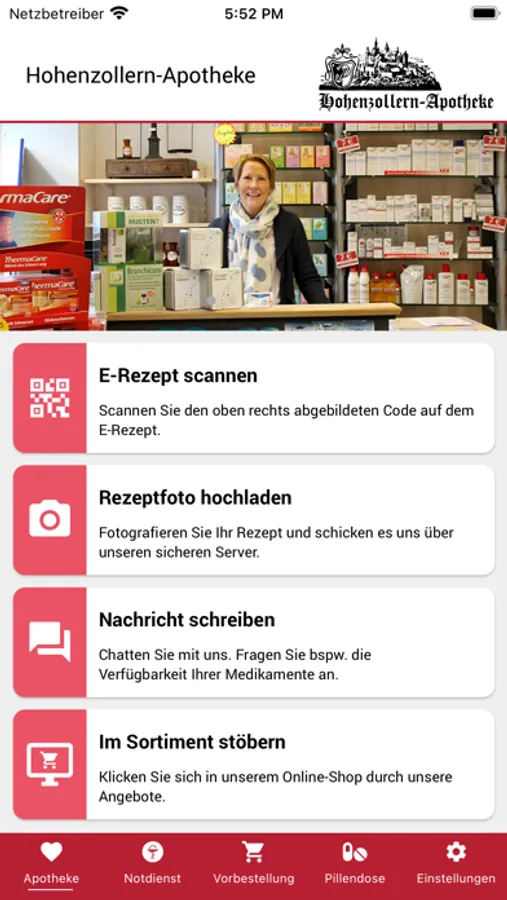 Ihr Rezept fotografieren Sie noch beim Arzt und schicken es uns direkt über den sicheren Kanal in unserer App. Wir benachrichtigen Sie sofort, wenn Ihr Medikament abholbereit ist.