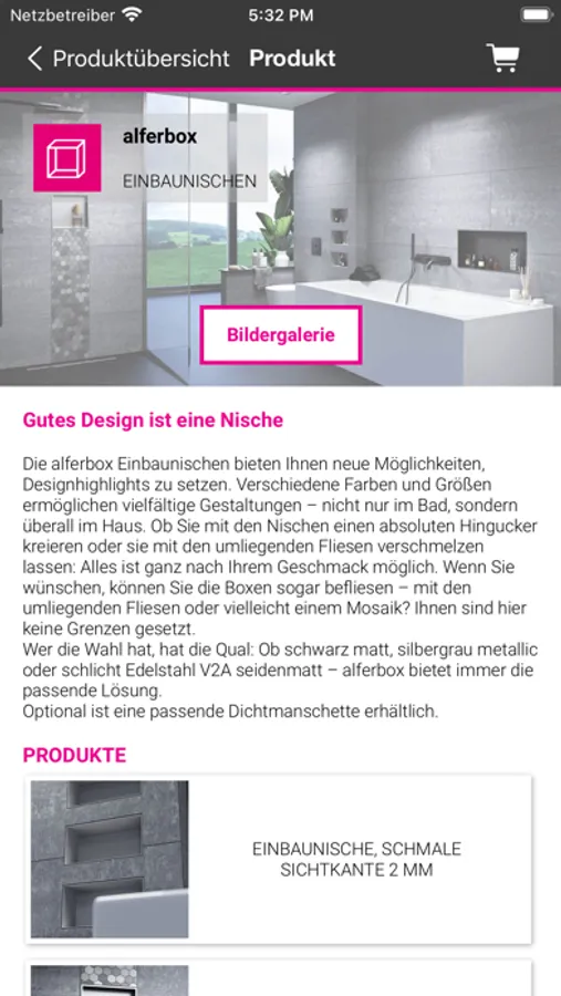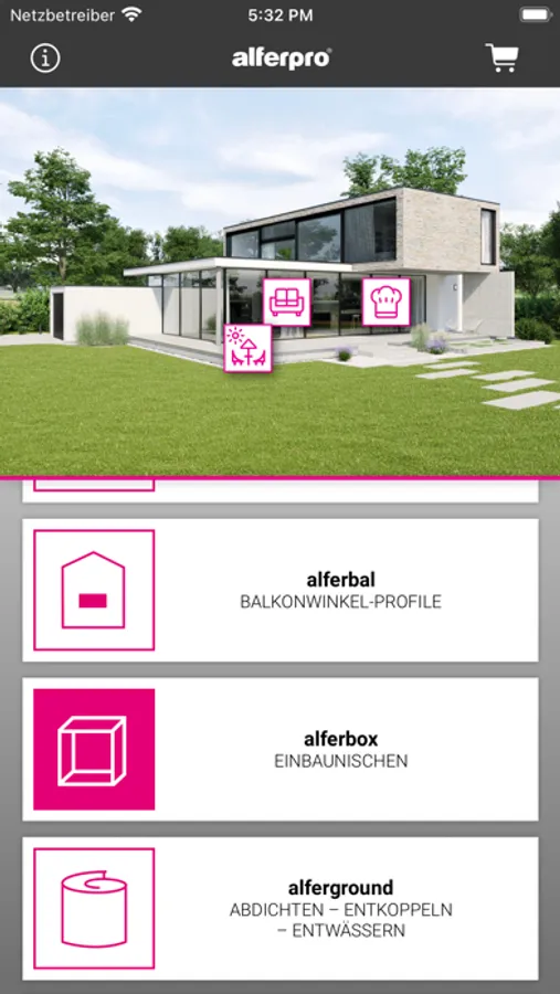 Für unsere alferpro-Kenner muss es nicht immer der lange Weg sein. Mit dem iPad gelangen Sie über ein Icon oben rechts direkt zur Produktübersicht. Auf dem Smartphone wird Ihnen die Produktübersicht direkt unter dem alferpro-Haus angezeigt - einfach runterscrollen.