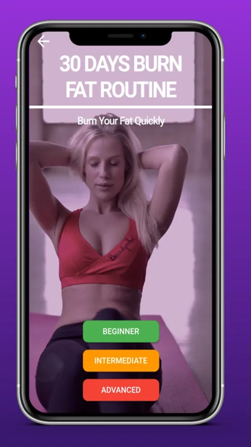 "Burn Fat" this workout routine contains 3 different level (Beginner,Intermediate,Advanced) and every level contains inside 30 days workout routine.In this routine you can burn your body fat quickly and easy.