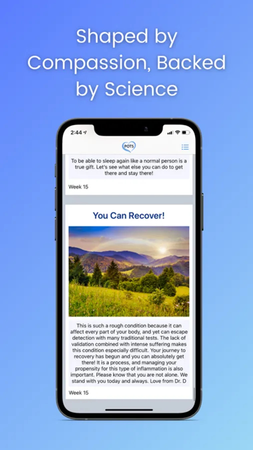 Listen to Dr. Driscoll twice a week as she educates and guides you. Log your progress in your workbook as you learn what foods can be helpful (or need to be avoided), how to approach exercise, and eventually, how to return to a normal sleep pattern! Hear from an expert how recovery from POTS is possible! There is hope for POTS patients!