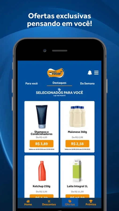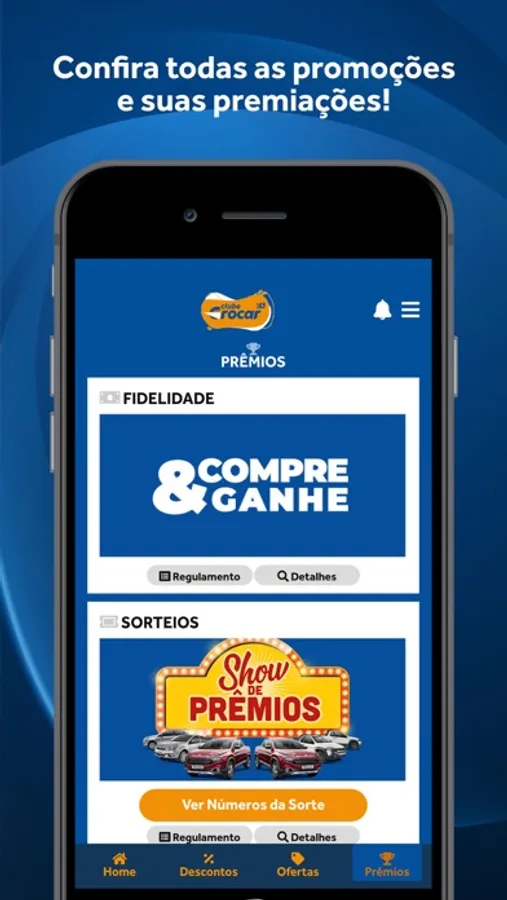 • Acompanhamento da pontuação atingida nas compras e visualização da tabela de prêmios para resgate.