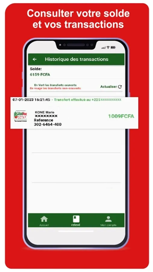 - Transférer de l’argent vers tous les destinataires de son choix jusqu’à 2 000 000 F CFA ;
