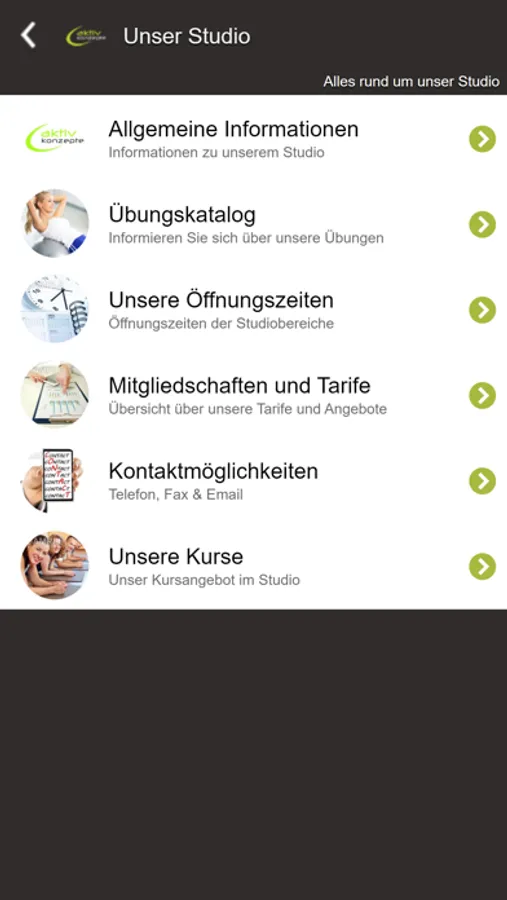Informationen wie zum Beispiel der aktuelle Kursplan, News, Dein persönlicher Trainingsplan oder aktuelle Angebote werden ständig aktualisiert und sind jederzeit abrufbar.