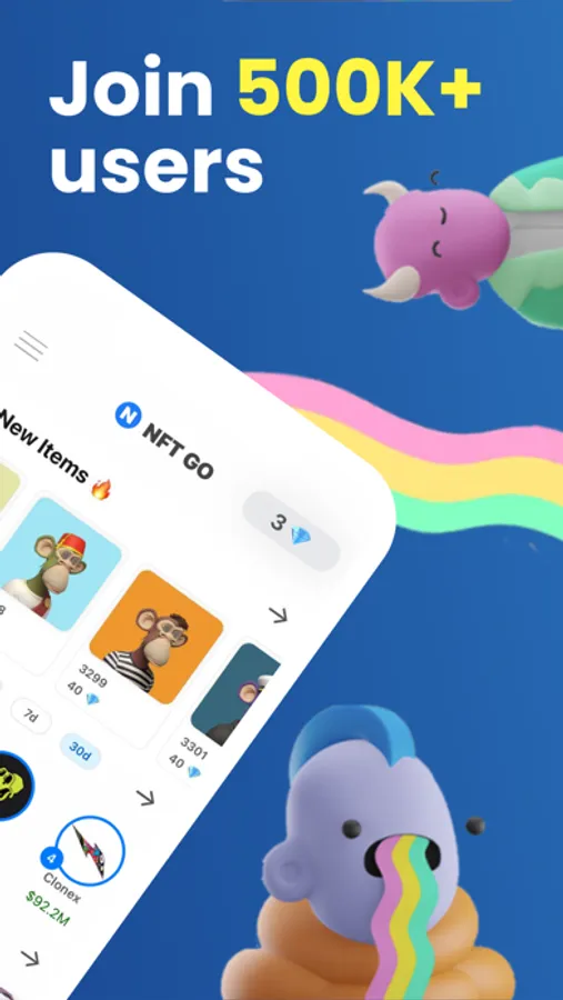 NFT GO is the largest NFT marketplace on mobile, enabling users to create, buy, and sell NFTs - all from their mobile phones.