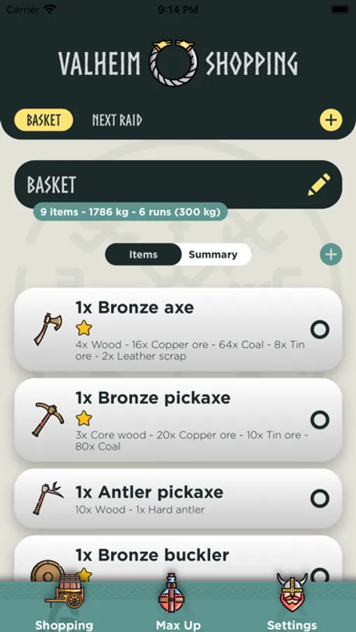 Well this app is for you, you can now keep track of your shopping list to build the equipment you need for your next adventure.