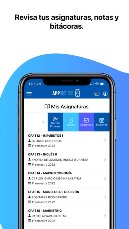 - Comunicarte directamente con tu académico vía correo electrónico o recibir directamente en tu dispositivo notificaciones.