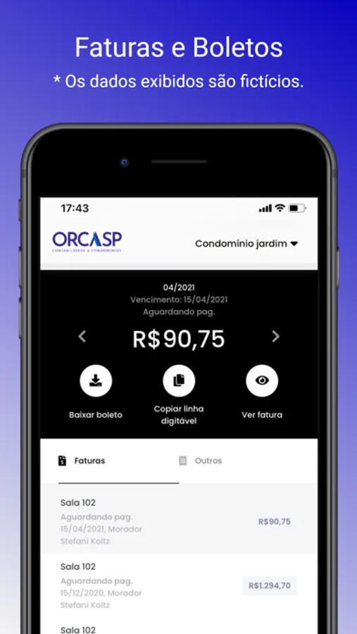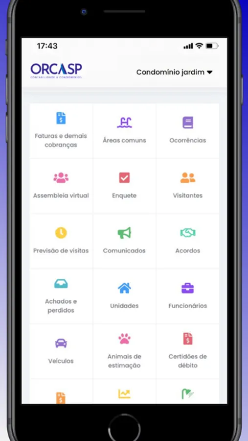 Realize diversas ações de maneira rápida e ágil, visualize suas faturas, reserve áreas comuns, entre diversas outras funcionalidades.