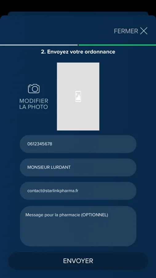 - L'envoi d’ordonnance : scannez l’ordonnance de votre médecin grâce à l’appareil photo de votre smartphone et envoyez-la directement à votre pharmacien. Vous recevrez un accusé de réception de votre pharmacien puis un autre SMS quand votre ordonnance sera prête. Vous n’avez plus qu’à passer à votre pharmacie récupérer vos médicaments lors de votre passage.
