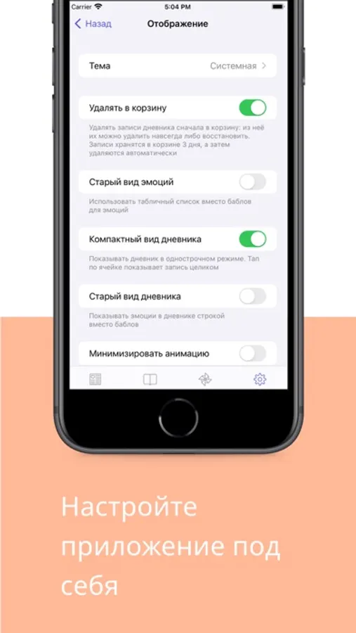 - Записи дневника синхронизируются между устройствами через iCloud.