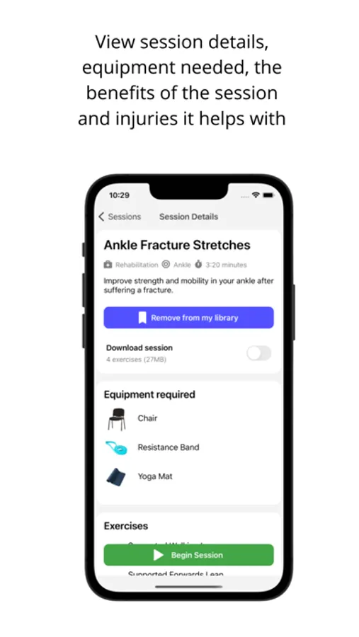 Each workout will tell you exactly how long it'll take, what equipment you'll need and the benefits of each exercise. Once you've completed a workout, save how difficult it was to compare it to previous sessions and track your progress over time to keep you motived on your recovery.