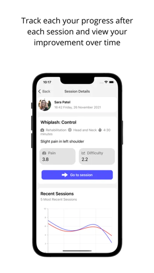 Registered Practitioners can create their own exercises and sessions, which can then be assigned to your patients to make it easier than ever to help your patients on their recovery. Track your patients progress over time and see who is complying to their regime, and who is not adhering to their given sessions.