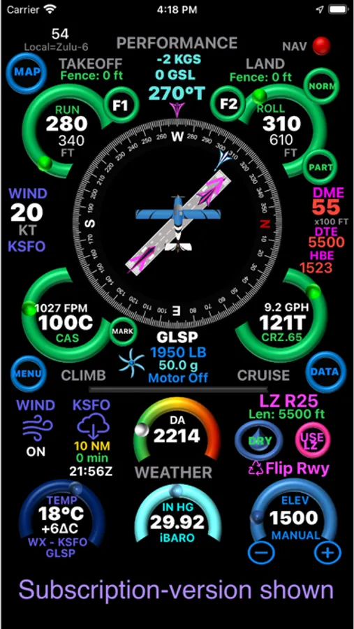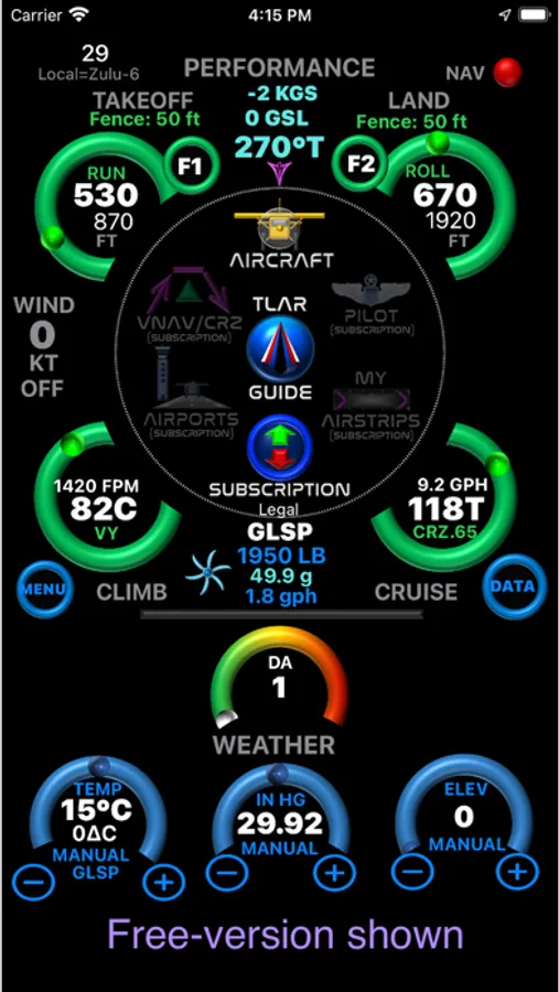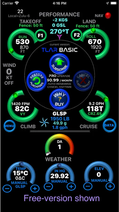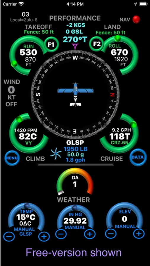 The basic version of the app is free. It predicts aircraft performance using user-entered weather and elevation information in a static fashion like a calculator.