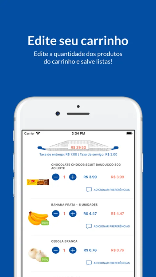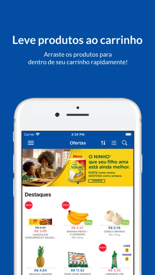 • Adicionar produtos no seu carrinho com um simples tocar e arrastar.