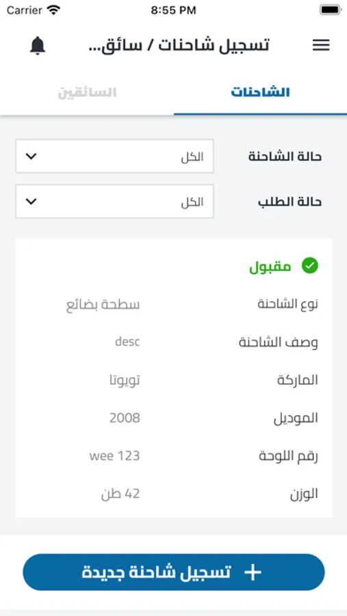 In the same way that contracts are made in the transportation market, with the availability of an application for the driver and electronic services on our platform that helps truck owners to easily manage their fleet, according to the laws and regulations of the Public Transport Authority in the Kingdom of Saudi Arabia
