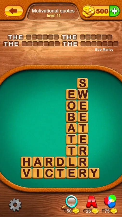 - Free 500 coins at the first word game start.