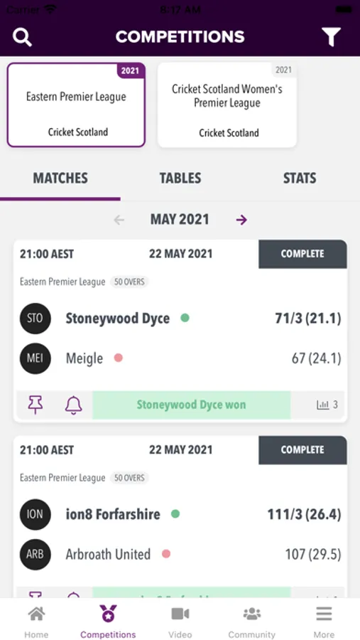 Cricket Scotland Live is the easy way to keep up-to-date with all matches across Cricket Scotland competitions. Using Cricket Scotland Live, you can access detailed scores for In Progress and Completed games being scored or streamed, as well as view previews for upcoming matches.