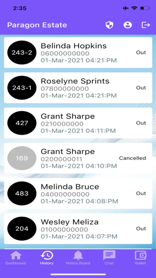 At any particular time, the Home or host with visitors is known and reports can be generated when needed by the community/estate administrator.
