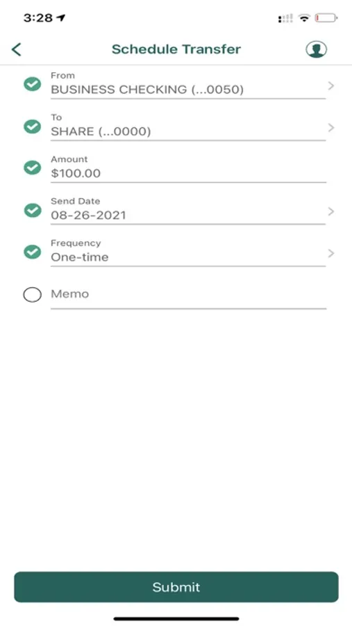 - Schedule a one-time or recurring transfers.