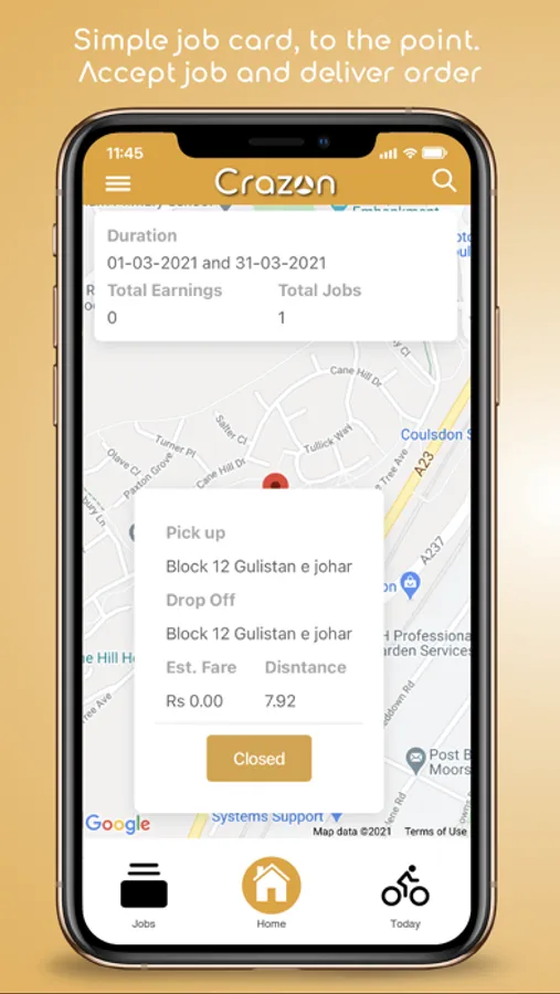 The Crazon Delivery Platform App lets you manage your delivery jobs. You can start delivery services for any kind of business on Crazon Platform.