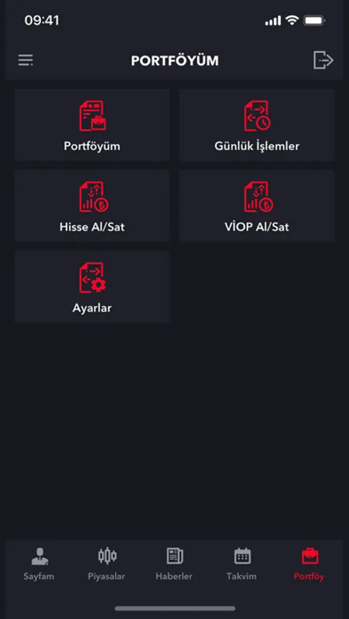 Genel menü içeriğimiz sayesinde kolayca uygulamanın ana başlıklarında dolaşabilir, ihtiyacınız olan alt başlıklardan işlemlerinizi gerçekleştirebilirsiniz. Ana başlıklardan; sayfanıza, piyasalara, haberlere, takvim menüsüne, portföyünüze, alarmlara ve uygulama ayarlarına ulaşabilirsiniz. Ayrıca ‘bize yazın’ kısmından yatırım hesabı açmak için istediğiniz zaman yardım alabilirsiniz.