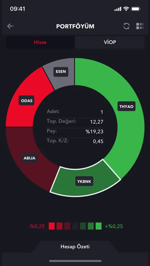 Portföy bölümüne giriş yaparak hesaplarınıza erişebilir, menünün içindeki ‘hisse/viop’ menüsündeki grafiklerden varlık dağılımınızı anlık görebilir, zaman içindeki varlık gelişiminizi de görüntüleyebilir ve günlük işlemlerinize ulaşabilirsiniz.