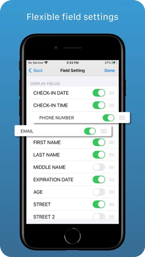 IDOrganizer is the identification management essentials that offers unique additional fields that you can customize based on your specific business needs. It records the check-in date and time whenever you capture an ID. All the ID information is stored in the local iPhone device and exported as needed*.