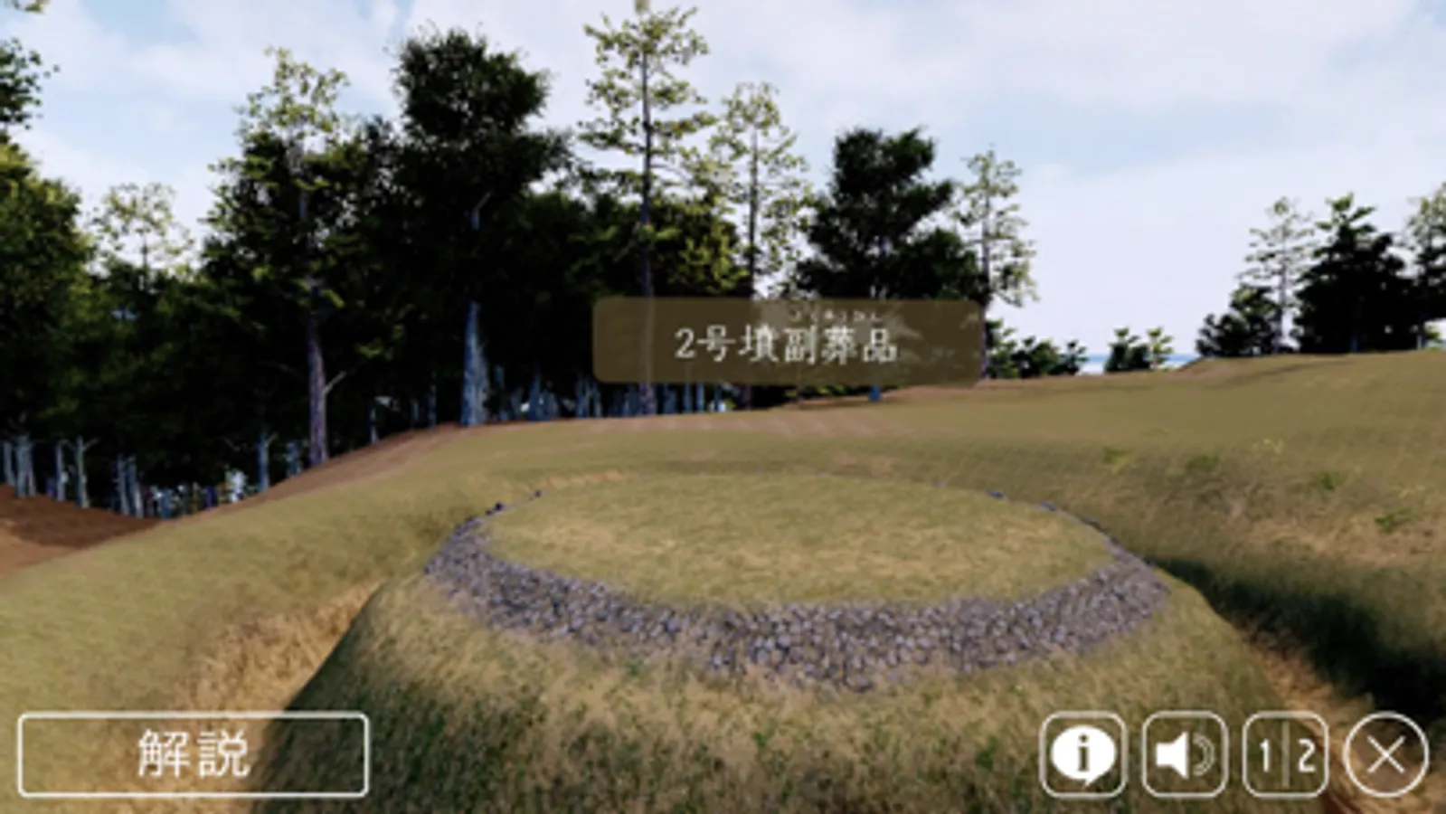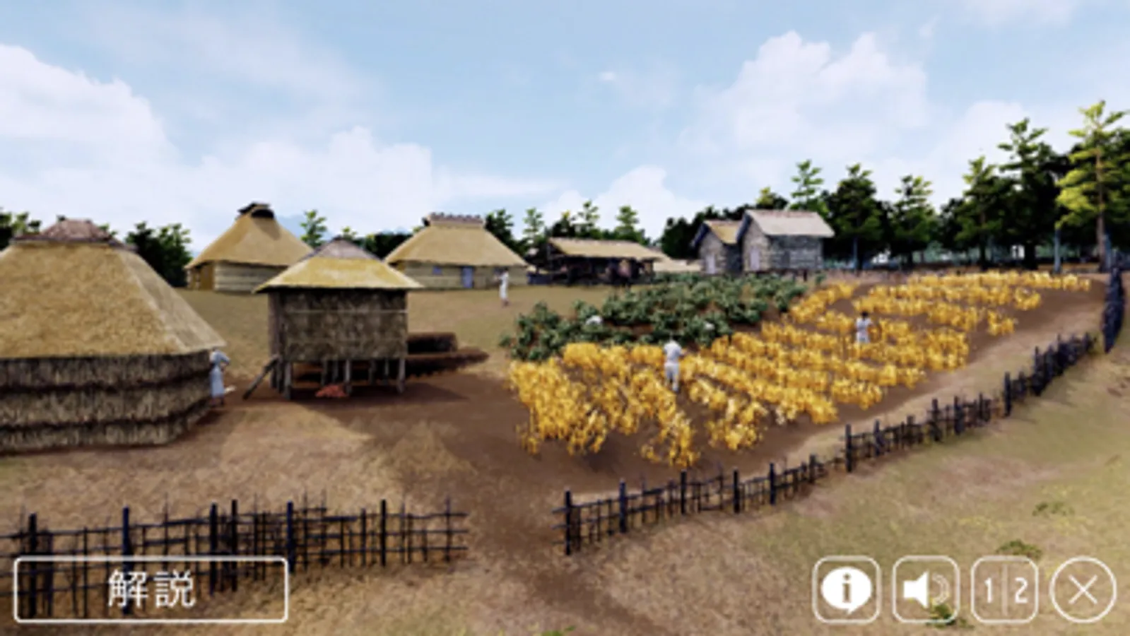 金井東裏遺跡に設定された4ヵ所、三ツ寺Ⅰ遺跡に設定された4ヵ所のビューポイントエリアに入り、アイコンを押すと、古墳時代の集落を再現したVRが表示されます。