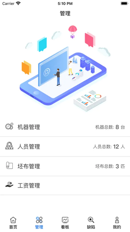 大圆机助手,一款集坯布检测、机器监测与人员管理于一体的高智能辅助型APP,经过多次实践测试,实现了人员管理,工资管理,机器管理,坯布绑定,人员设置,报警统计等功能。