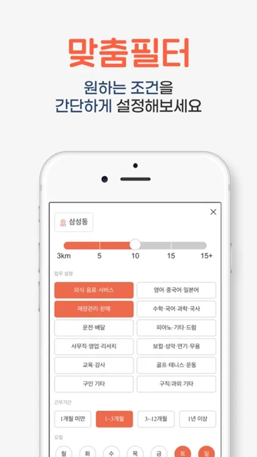 하고 싶은 일, 가능한 요일 등 맞춤 알바를 쉽게 검색할 수 있어요